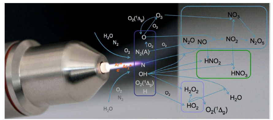 圖 1-1 大氣壓等離子體射流及反應(yīng)示意圖