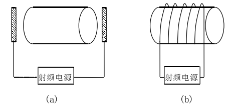 小型等離子清洗機(jī)有很多種結(jié)構(gòu)型式,根據(jù)電極在放電室的位置區(qū)分,可分為外電極和內(nèi)電極;根據(jù)射頻電源的耦合方式區(qū)分,可分為電容耦合和電感耦合,如圖2-2所示。